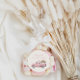 A sweet winter baby shower sticker featuring a watercolor pink vintage truck and woodland animals.