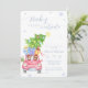 Cute adorable modern winter baby shower theme, Holiday baby shower theme, design feature dusty blue watercolor winter woodland animals, including santa teddy bear, santa moose drive the red car carry the gifts, Christmas tree, snowflake and script calligraphy typography "baby it's cold outside". you can customize your own unique text and color.