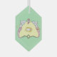 I like the look and the weight of this glass Christmas ornament. It came with a white ribbon for hanging. It's very shiny on the front and a little more matte on the back where it was printed. Looks nice on the tree with a light behind it. The printing is very good for being done on glass. I think it could be a tad bit darker in some areas compared to the product view on the site. But I guess light colors would be problematic on a translucent surface no matter what. I'm happy with it.