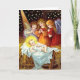 A charming vintage Christmas card featuring baby Jesus in his manger surroundet by three young angels.