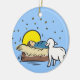 Cute Christmas tree ornaments that feature a baby Jesus laying in a manger with a sheep watching over him. Decorate your Christmas tree with our cute ornaments that can be customised by you.