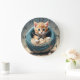 Wall Clock, 25.4 cm Round Black Wooden Frame