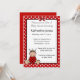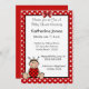 Cute Ladybug baby on a red and white dotted background. Use our easy template to customise with your party information.