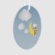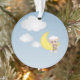 A sweet baby design with a little lamb holding a toy bear and sitting on a yellow crescent moon suspended from white clouds. Coordinating items available. Customise as desired.