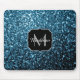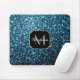 Baby light blue faux glitter sparkles Monogram Mouse Pad
