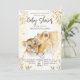 Baby lion with lioness yellow gold brown baby shower invitation template. A cub and a mother lion.