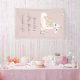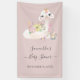 Adorable white baby llama with pink flowers on a banner for the party. They match our invitation. See our matching collection of party products and baby products.