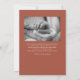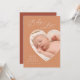 This elegant and modern stylish vertical photo birth template announcement is a 2-sided double sided card that features a heart shaped cutout photo of your newborn baby girl or baby boy and sweet phrase, "Baby Love" in lovely script font. Personalise this photo card with your custom message from the family (mother, father, siblings if you wish) that can be personalised on the back side with any thank you message or phrase quote from the new parents. There is also a second horizontal photo featured on the backer side. Shades of terracotta muted coral and boho bohemian muted rust.