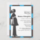 These modern baby shower invitations feature a modern pregnant silhouette with a bright blue & black background.