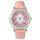 Baby Meerkats And Flowers, Girl Pink Leather Watch