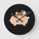 Baby Monkey Riding Backwards on a Pig Round Clock