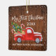 Baby My First Christmas Wood Red Truck Snow Ceramic Ornament