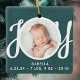 This cute Baby's Birth Stats Christmas Photo Ornament is decorated with the word JOY in stylish script typography on a green background.
