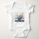 Baby name in shades white to black with pacifier Baby Bodysuit. Customise the name one time and all the shades will follow.