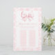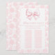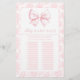Cute "Baby name race" game designed for a baby girl shower, adorned with a charming pink bow and elegant floral pattern at the back . Engage your guests with this delightful game, perfect for adding fun and excitement to your celebration while creating cherished memories.