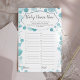 This baby shower game card features a script modern font on pastel blue transparent dots background, perfect for a baby boy! Please check all games from this collection below.