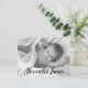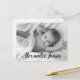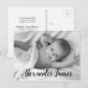 Personalised with baby's photo on the front and special message on the back. This design uses an elegant script handlettering style font for baby's name for a touch of sophistication. Express your excitement in announcing the birth of your child and send your gratitude at the same time.