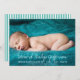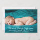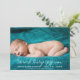 Photo Custom Name Template Teal Stripe Baby Birth Announcement card is a great fit for both boys and girls, depending on the hero photo you have. You can edit the whole text on the front. The back is teal and white stripes.