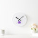 A sweet round clock for the nursery, this clock says the word "Baby", under which there is a nice little picture of a violet.