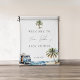 Bring the beach vibes to your baby shower with this stunning tapestry featuring a picturesque seaside view complete with swaying palms, camper vans adorned with surfboards, and the soothing sights of the ocean. It's the ideal backdrop to set the stage for a tropical-inspired gathering that's as relaxed as a day at the beach.