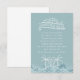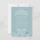 A girl baby shower "baby on board" theme featuring white line art with sun, and waves with surfboard between two palm trees at bottom. White text. Background is light blue colour.