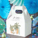 This cute tropical boho "baby on board" gender-neutral baby shower favour box features a pair of surfboards, baby laundries(aloha shirt, swimwear, and romper,) palm trees, and skateboard on a white background. Personalise it for your needs. You can find matching products at my store.