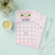 Baby on board surfing splash pink girl baby shower bingo game card. Get ready to ride the wave of fun at your baby shower with our adorable bingo game cards! Featuring a unique design with three vibrant surfboards against a soft pink backdrop, complete with palm trees and sunrays, these cards are sure to catch your eye. The light pink background adds a touch of serenity, while a playful water splash effect brings a burst of energy. Flip the card over and you'll find the same water splash motif, creating a cohesive and delightful aesthetic. This captivating and fun-filled bingo game card is the perfect way to make a splash at your baby shower!