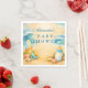 A cheerful surf-inspired baby shower design featuring sunny skies, rolling ocean waves, seashells, and playful beach elements. This light, summery artwork is ideal for a relaxed seaside celebration and can be easily personalized with names, dates, and event details while keeping a fresh coastal vibe.
