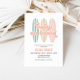 Baby On Board surfboard beach baby shower invitation in pink and aqua.