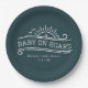 Baby On Board Surfing Slate Blue Baby Shower Paper Plate