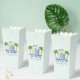 Baby on board surfing splash blue baby boy shower favour box. Get ready to celebrate the exciting arrival of a baby boy with this charming baby shower theme inspired by the ocean. Three surfboards in calming shades of blue are featured, along with tall palm trees and radiant sunrays. The soft light blue backdrop mimics a gentle ocean breeze, accented by a pop of refreshing aqua blue water, setting a peaceful atmosphere ideal for welcoming the future little surfer.