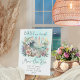 The "Baby on Board" tropical surfing-themed exotic floral design is a baby shower template that features a gender-neutral theme with a tropical flair. The design depicts a grouping of colourful surfboards with the ocean and a splashing wave amidst a beautiful tropical floral surround. The colour scheme consists of soft shades of green, blue, pink, and yellow, creating a soothing and inviting atmosphere. The typography is playful and fun, making it perfect for a baby shower celebration.