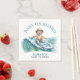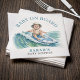 Celebrate the arrival of your bundle of joy with this adorable "Baby on Board" surfing-themed baby shower napkins. The unique arched design features a happy baby riding an ocean wave on a surfboard, all rendered in a soft watercolor style. These sweet and stylish napkins are the perfect decor to get guests excited for your little one to surf onto the scene. It's easily customised with all your party details for a memorable and one-of-a-kind celebration.