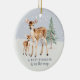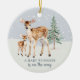 Celebrate the joy of a new arrival with this customisable Christmas ornament that features a beautiful watercolor illustration of a doe and fawn with a simple evergreen tree on a backdrop of freshly falling snow. The front of the ornament features customisable text that says, “Baby Reindeer on the Way,” while the back offers space to add a photo, along with the baby’s name and birthdate, to create a truly unique keepsake. This ornament will make a thoughtful gift that will be treasured for years to come, becoming a beloved part of your family’s holiday traditions.