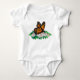 Cute and soft baby one-piece with a bright butterfly landing on white flowers, Soft simple design by artist David Paul