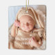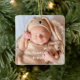 This is a lovely ornament, and great that you personalise the back with details of birthday, weight, etc.. My only tiny disappointment is the "My First" doesn't stand out very well on the background. More than happy with the printing of the photo and the writing on the back.