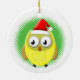 Baby Owl Cartoon Santas Hat Ceramic Tree Decoration