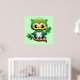 Cute Little St Patrick's Day Owl Cartoon Character standing on a branch and holding a Shamrock Clover. Original Vector Art Copyright BluedarkArt TheChameleonArt