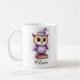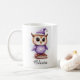 Snuggle up with a warm drink and this utterly adorable, customizable mug! It features a curious baby owl, dressed in a cozy purple Christmas pajama set adorned with star patterns and a pointed nightcap. Its feathers are painted with delicate watercolor textures and light shading, and it perches whimsically on a small stack of storybooks. With wide, expressive eyes and an inquisitive expression, this charming design is perfect for bedtime stories and cozy winter mornings.