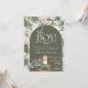 A cute baby shower design of a baby owl in a rocking horse and a choo choo train in green and peach and white colour background with personalisation options.