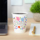 An 8 oz White Paper Cup, = Optional, No Lid= Optional, with a Drawing/Design, of the word Baby, in a Lighter Gray Color, with a Pink and Light Blue, Color Balloon, with Some Colorful Confetti, with a Red, Color Balloon. = on the front and back of the paper cup = (Drawing/Design by P.J.M.), =With the White Background removed.