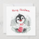 Cute Christmas card with an adorable little penguin and stocking in a snowy forest. Easily personalise this Christmas card with your own text. Matching items are available in my store - Kate Eden Art.