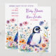 Baby Penguin in Flowers Girl's Baby Shower Invitation