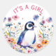 Baby Penguin in Flowers It's a Girl | Baby Shower Classic Round Sticker