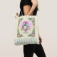 Sweet baby penguin tote bag to help keep baby (or you) organised on a day out! Pale yellow background and green and white stripes on the bottom. Floral accents and the cute penguin in the middle above text that you can customise.