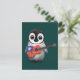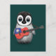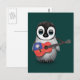 Baby Penguin Playing Taiwanese Flag Guitar Teal Postcard