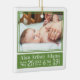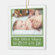 Commemorate your baby’s first year with this personalised Birth Stats Ornament. Showcasing a favourite newborn photo with birth details in a hand-sketched font, it’s a heartfelt keepsake for holidays and beyond. Fun, cheerful, and modern green striped background.
