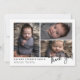 Announce your new baby and thank your baby shower guests with this elegant and modern new baby thank you card in white with black fonts. Add three photos of your adorable baby, their name, and time and date of birth, and height and weight too! On the back, you can write a personal thank you message by hand on the faintly lined thank you card!