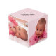 Make your own baby photo cube with 4 of your favourite photos, name and custom text. The photo template is set up for you to add your photos around the sides - square instagram style photos will be the easiest to use. The top face is pink and you can customise this with baby's name in elegant script. The sample wording reads "adorable from head to toe" in black print, which you can keep or edit to your preferred wording. We have used baby photos but the design will work perfectly for any theme or occasion.