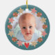 “First Christmas.” A cute gingerbread boy and a cookie circle on a hunter green background, along with playful white script typography on a steel blue band, help you usher in Christmas and New Year. On the back, personalise with a photo of the new baby. Feel the warmth and joy of the holiday season whenever you use this stylish and modern personalised photo keepsake ornament. Choice of a circle or square shape. Perfect for the newly proud parents, grandparents, as well as other relatives!